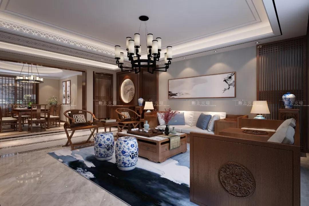 客厅是传统与现代居室风格的碰撞,设计师以现代的装饰手法和家具,结合古典中式的装饰元素,来呈现亦古亦今的空间氛围。